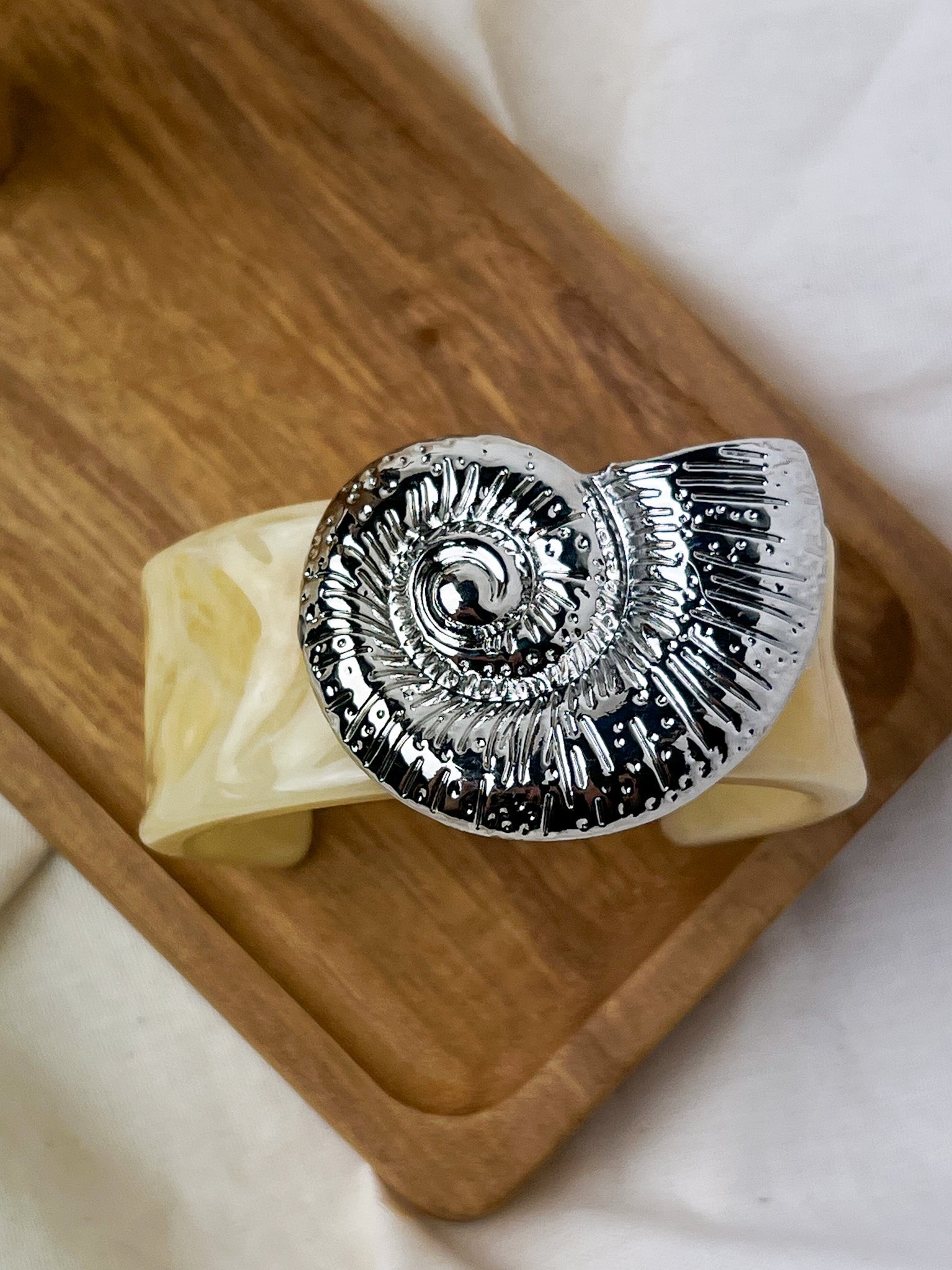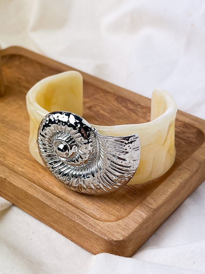 Bracelete Concha Resina - OffWhite/Prata